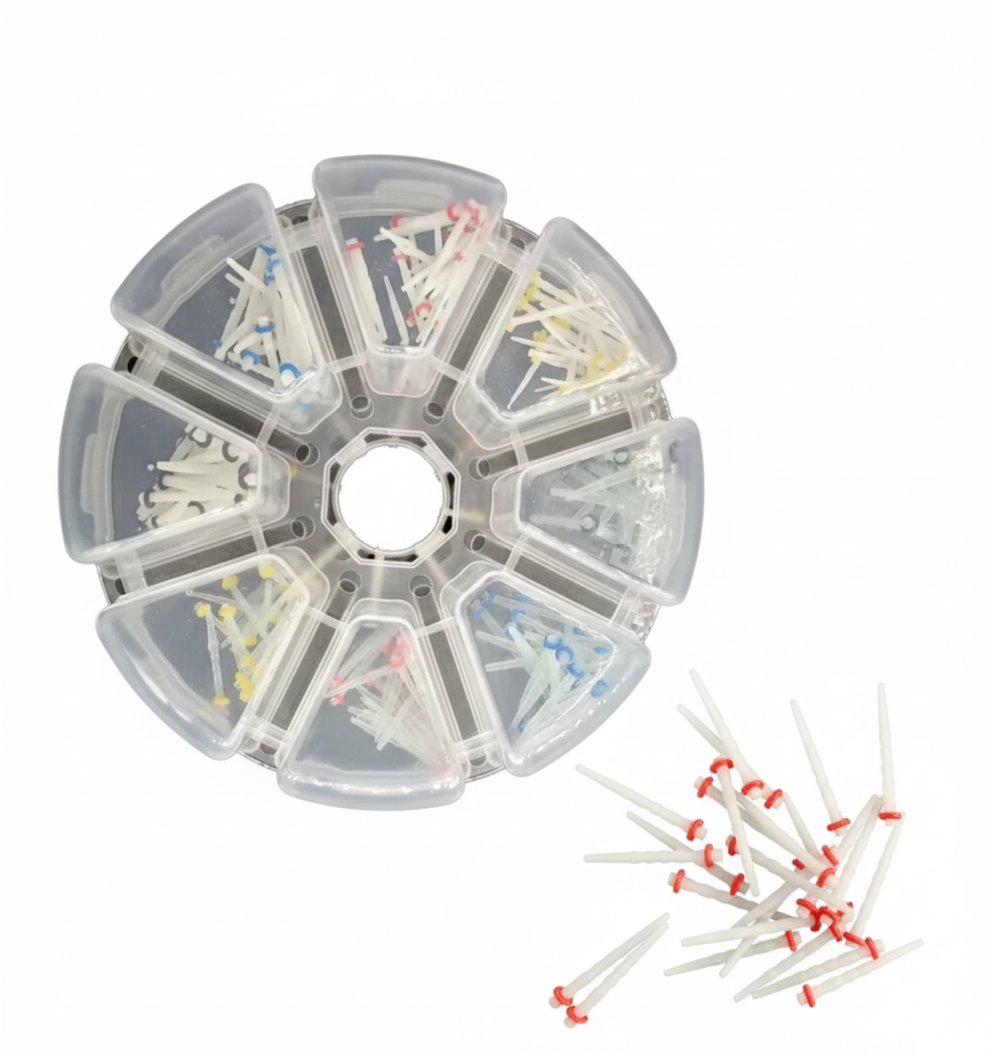 • 200 Fiber Posts معبأة بمقاسات مختلفة لمرونة أكبر في الاستخدام.