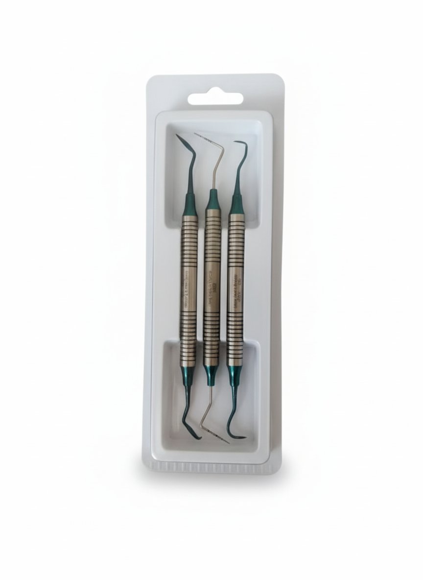 ثلاثي طبي لا غنى عنه: يتضمن أهم الأدوات اللازمة للتقليح: (يمكنك تحديد الأدوات الثلاثة هنا، مثل: مكشطة، مجرفة، ومسبار).